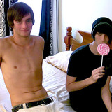 Justin says he's straight and that he's never filmed a video with another boy, Aron seems pretty excited to be the one to take his cherry! They start off making out and with Aron sucking Justin's dick until the fucking starts. Aron lubes up Justin's cock before sitting on it, riding it until Justin decides to fuck him missionary style. Aron cums while being fucked but Justin holds off so he can give Aron a facial.